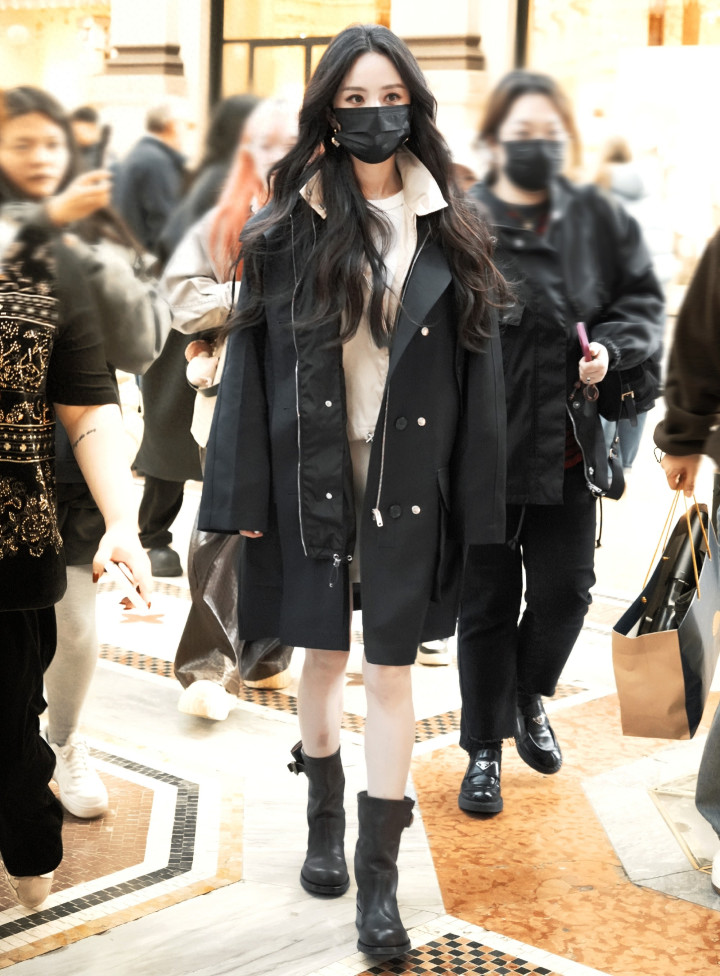 米兰体彩下载 杨幂米兰探店, 身穿卡其色套装外搭玄色风衣, 先锋好减龄