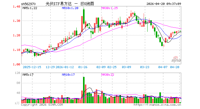 4月20日,光伏ETF易方达(562970)开盘涨0.00%,报1.228元。光伏ETF易方达(562970)重仓股方面,特变电工开盘涨0.07%,隆基绿能涨0.00%,阳光电源跌0.02%,TCL科技涨0.23%,通威股份涨1.08%,迈为股份涨1.51%,米兰体彩app德业股份跌0.01%,正泰电器跌0.03%,TCL中环涨0.35%,捷佳伟创跌1.03%。