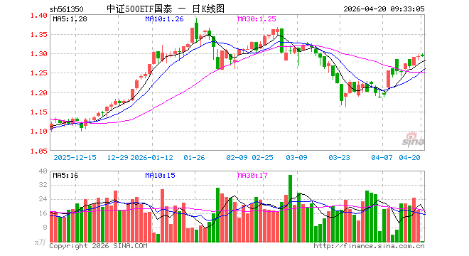 4月20日,中证500ETF国泰(561350)开盘涨0.23%,报1.295元。中证500ETF国泰(561350)重仓股方面,英维克开盘涨2.29%,信维通讯跌4.33%,巨东谈主汇注跌0.09%,中国卫星涨0.07%,航天电子涨0.30%,中矿资源涨0.02%,米兰先导智能涨0.16%,卧龙电驱涨0.10%,赤峰黄金跌0.92%,新奥股份涨0.00%。