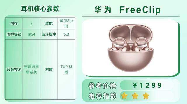 一句话概述:C形桥高颜值耳夹耳机,音质进展出色,华为生态无缝衔尾颜值实力双在线