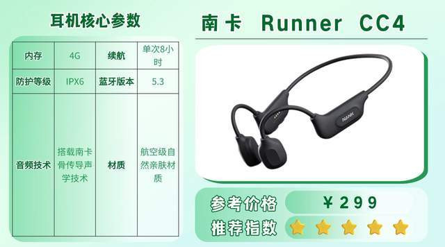 轮廓评价:南卡Runner CC4是平价机型里的王牌产物,25g分量抑制行业通例,是现在同价位最轻的真骨传导耳机之一,戴上险些无感,永劫期贯通无压力,慢跑、健身、通勤全天戴都酣畅,不会有负重感。