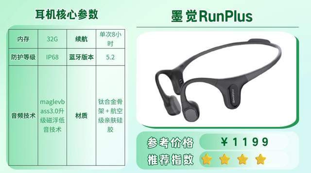 轮廓评价:墨觉RunPlus即是Terra的最好平价平替,28g超轻后挂筹办,亚搏体育官方网站 - YABO钛合金加硅胶材质,狭窄解析、久戴不累,剧烈贯通也不掉,舒截止终点接近旗舰Terra水平。机身作念工精熟,要点平衡,戴起来没职守,念念体验旗舰但预算有限的一又友最好采用。