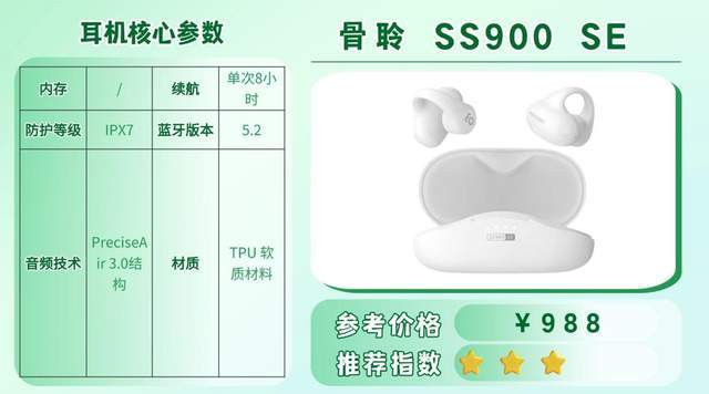 轮廓评价:骨聆SS900SE果然把轻巧作念到了极致,单耳才7.9g,分阵势筹办左右耳能单独用,夹在耳朵上险些看不见、嗅觉不到,机身工致又覆盖,在办公室、藏书楼、通勤路上用都不突兀、不张扬,永劫期戴也十足没存在感。压感界限加盲按凸点,操作很精确,毋庸看也能按对,平常用终点简单。
