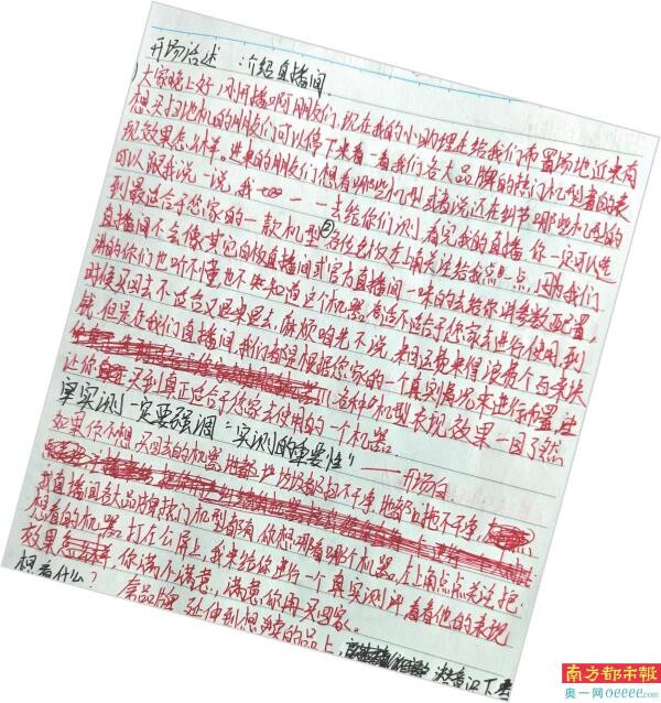 南都记者取得的话术培训纪录本里,主播在直播开场时被条件一定要强调“实测的进军性”,如“咱们直播间不会像其他直播间一味去讲参数配置,你们也听不懂……但是在咱们直播间,都是凭据您家的的确情况进行移交,各式机型弘扬收尾一目了然”等。