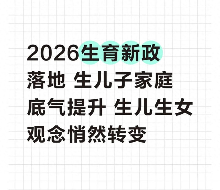 今天,我们就掰扯掰扯:2026生养新政,到底如何转换“生儿生女”这笔账?