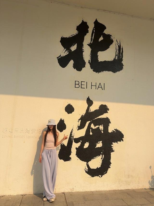 米兰体彩app 跳高好意思女胡麟鹏北海赏春,红唇吊带可人中带着小性感